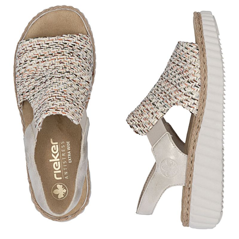 Extrem bequeme und modische Sandalen des renommierten deutschen Herstellers Rieker. Die Schuhe sind leicht, hochflexibel und bieten deutlich mehr Platz für die Füße. Rieker-Schuhe sind speziell auf Komfort und Bequemlichkeit ausgelegt.