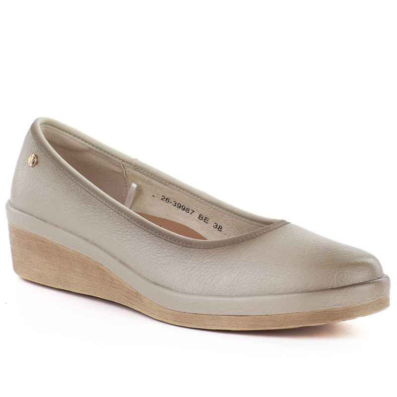 Die Schuhe haben einen bequemen Keilabsatz und passen somit perfekt zu Alltags- und Freizeitoutfits.