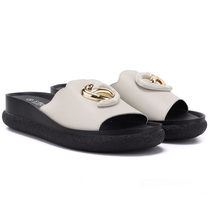 Beige Leder-Keilsandalen für Damen S.Barski KV61-6046
