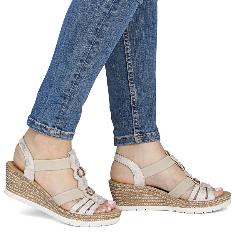 5. Bequeme beige Espadrille-Sandalen für Damen, Modell Rieker 619B2-60