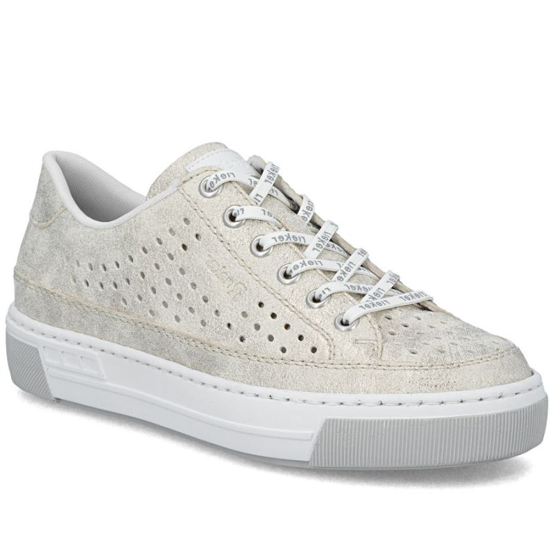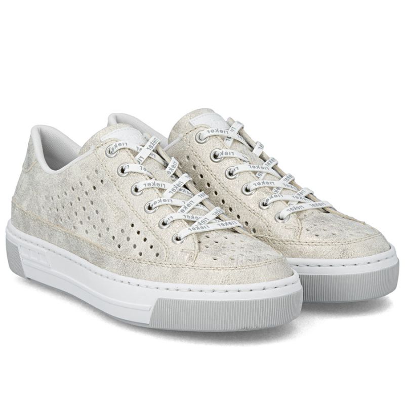 2. Bequeme, weiche, beige Damenschuhe mit Lochmuster Rieker L8849-60
