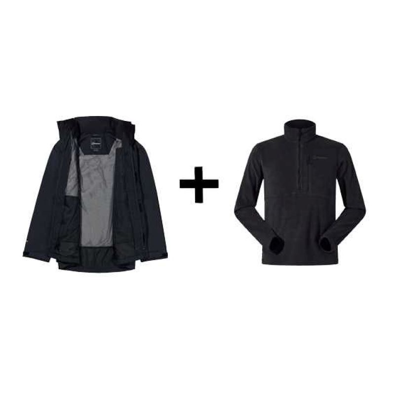 Berghaus Hillwalker IA Shelljacke, Größe M, Schwarz + Berghaus Prism PT HZ Sweatshirt, Größe M, Schwarz