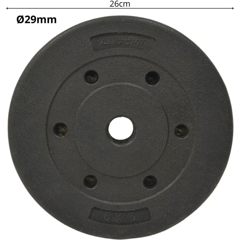 Mit der ENERO FIT 5 kg 29 mm Beton-Hantelscheibe können Sie die Intensität Ihres Trainings steigern und sicher zu Hause oder im Fitnessstudio Kraft aufbauen. Dank ihrer robusten Konstruktion und des Lochdurchmessers von ca. 29 mm ist sie mit den meisten Lang- und Kurzhanteln kompatibel.