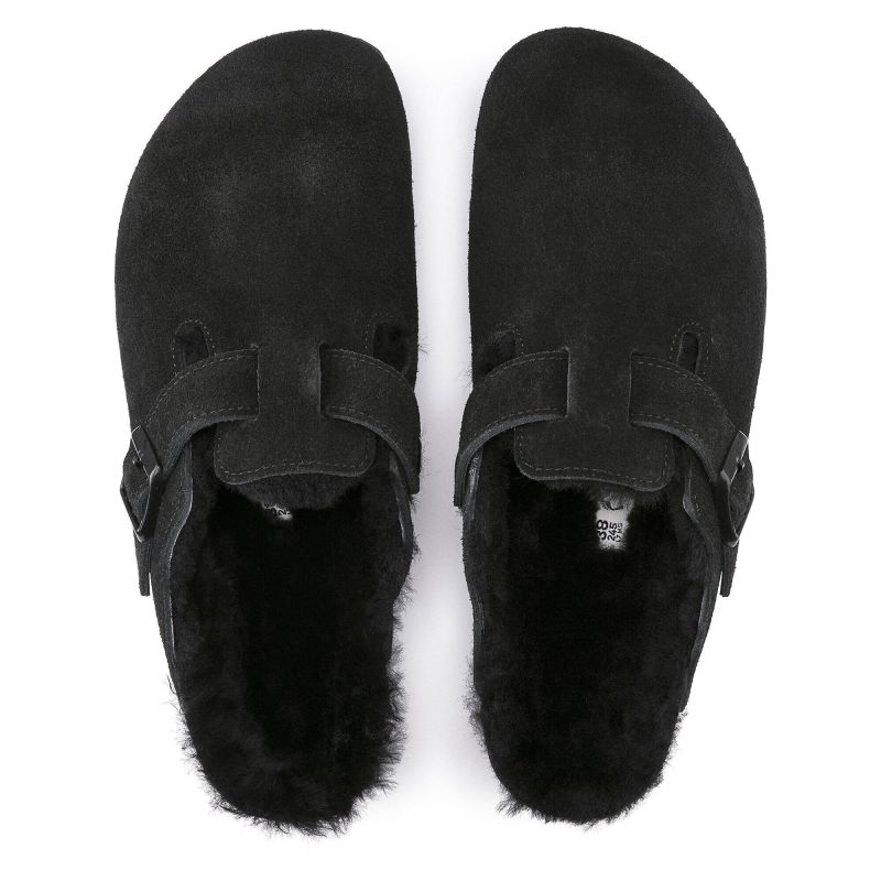 Birkenstock Boston Shearling Black Damen Clogs aus Wolle, isoliert, Wildleder, schmal (0259883)