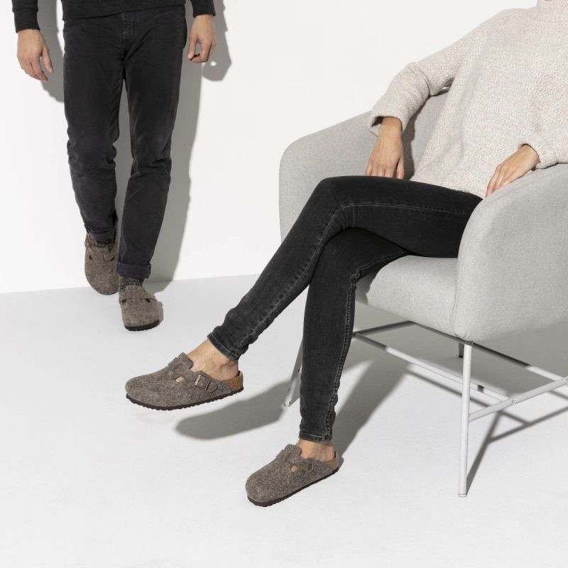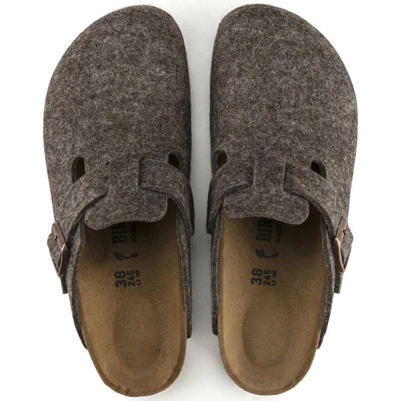 Der Boston Clog, ein Klassiker unter den BIRKENSTOCK-Modellen, besticht durch sein Obermaterial aus weichem, hochwertigem Wollfilz. Ein integrierter Riemen mit robuster Metallschnalle ermöglicht die individuelle Anpassung an jeden Fuß.