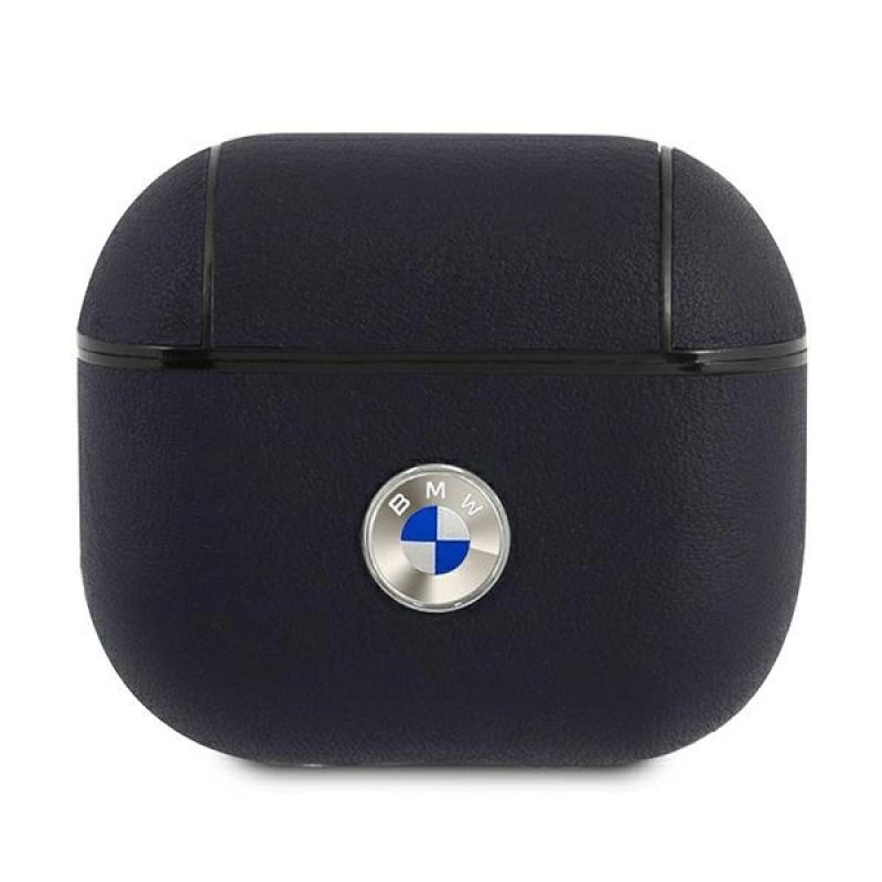 BMW Echtleder-Etui mit silbernem Logo für AirPods 3 – Marineblau