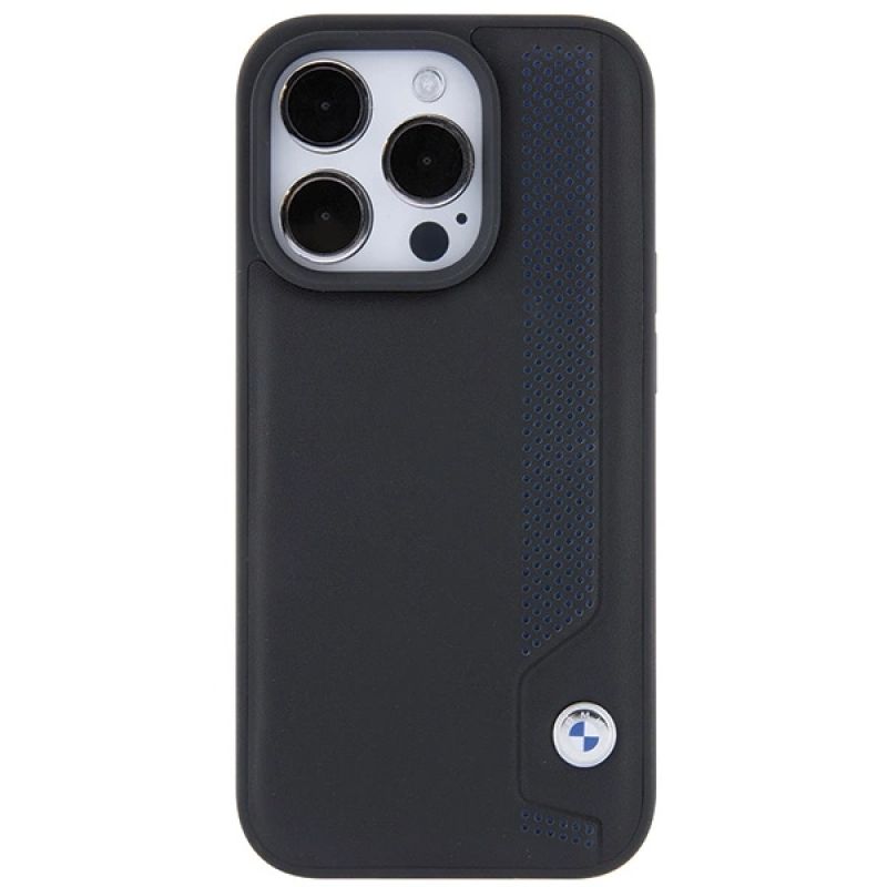 BMW Leder Blue Dots iPhone 15 Pro Max Hülle - Schwarz