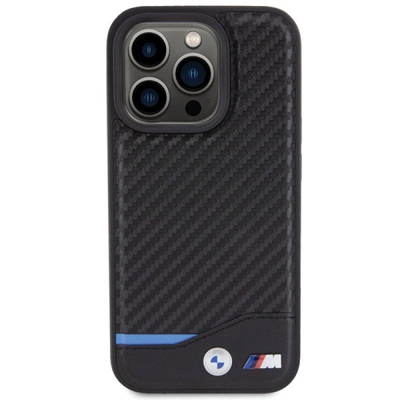 BMW Leder-Carbon-Hülle für iPhone 15 Pro – schwarz