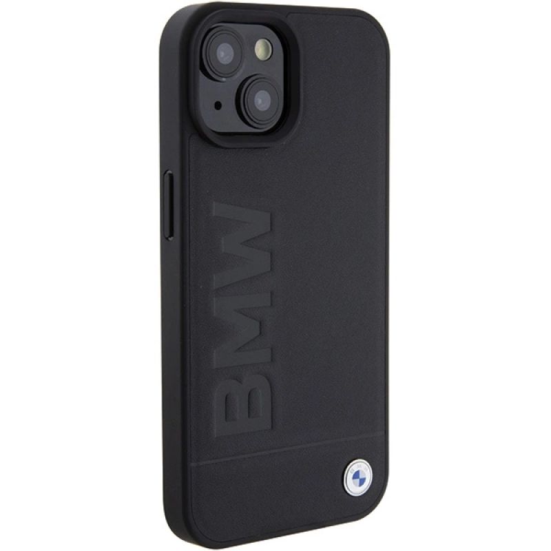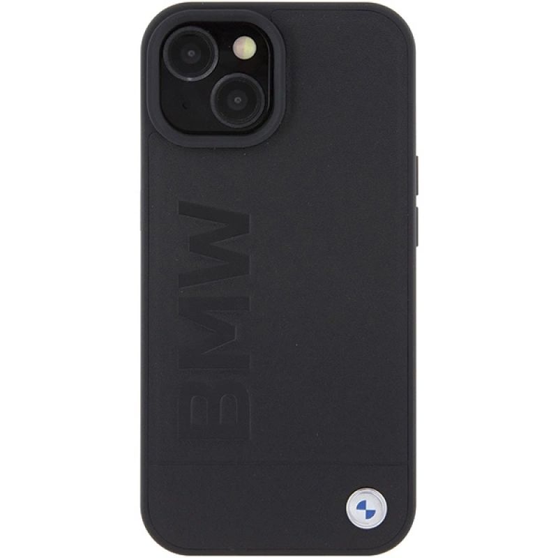 BMW Leder Hot Stamp Hülle für iPhone 15 Plus – Schwarz