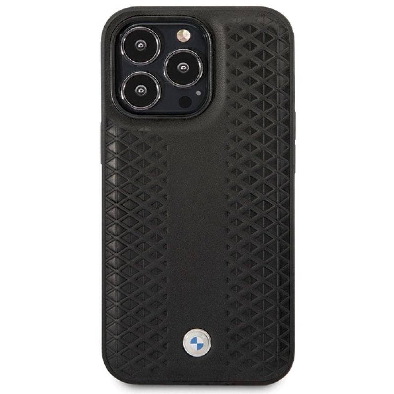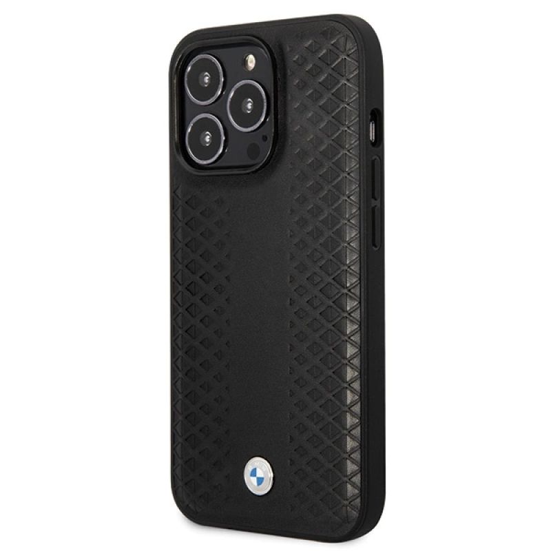 BMW Lederhülle mit Rautenmuster für iPhone 14 Pro – Schwarz