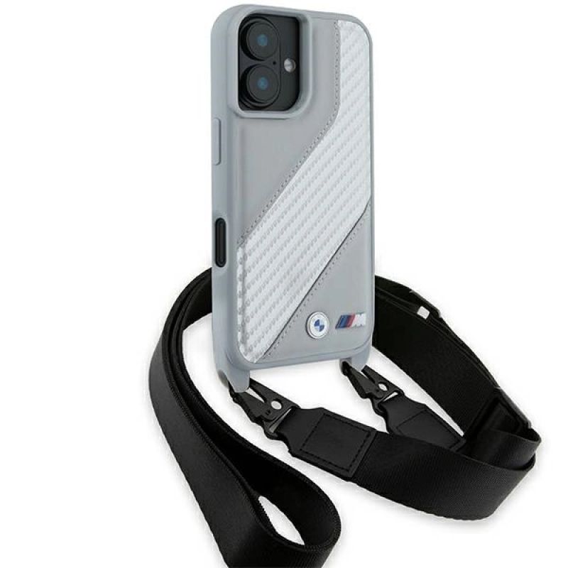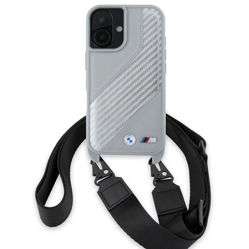 BMW M Edition Carbon Stripe & Strap Hülle für iPhone 16 – Grau