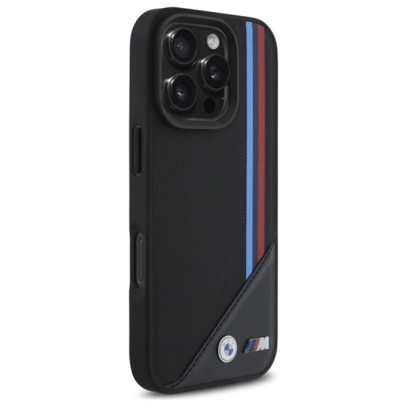 BMW M Meshed Tricolor Stripes MagSafe-Hülle für iPhone 16 Pro Max – Schwarz