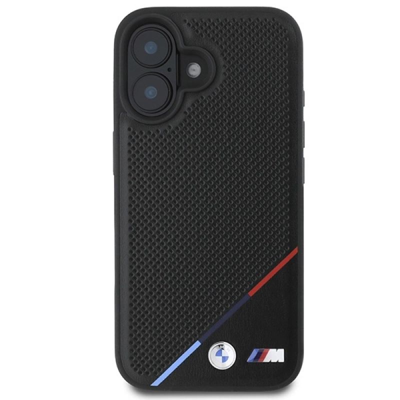 BMW M Perforated Tricolor Line MagSafe Hülle für iPhone 16 Plus – Schwarz