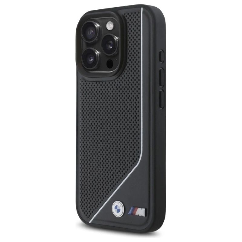 BMW M Perforated Twisted Line MagSafe Hülle für iPhone 16 Pro – Schwarz