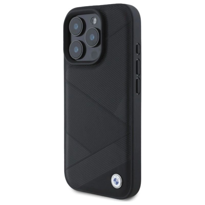 BMW Sign Leather Crossing Lines Pattern Hülle für iPhone 16 Pro Max – Schwarz
