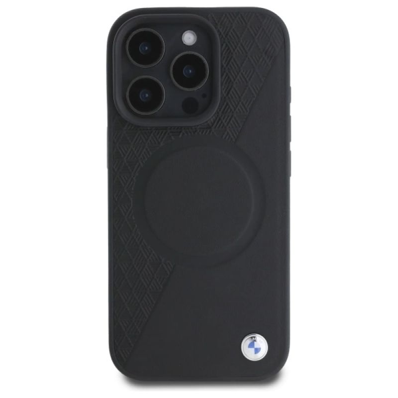 BMW Sign Leather Half Textured And Circle MagSafe-Hülle für iPhone 16 Pro Max – Schwarz