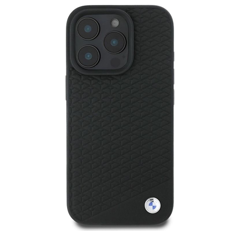 BMW Signature Leder Diamond Metal Logo MagSafe-Hülle für iPhone 16 Pro Max – Schwarz