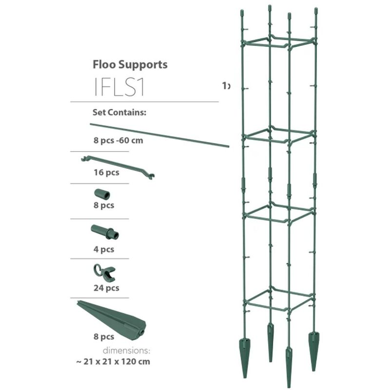 Die FLOO SUPPORTS 21x21x120CM FOREST GREEN PFLANZENSTÜTZE ist ein vielseitiges Set, mit dem Sie verschiedene Rankhilfen für Kletterpflanzen gestalten können. Ihr ästhetisches Design, das robuste Material und die einfache Montage machen sie zur perfekten Lösung für jeden Garten!