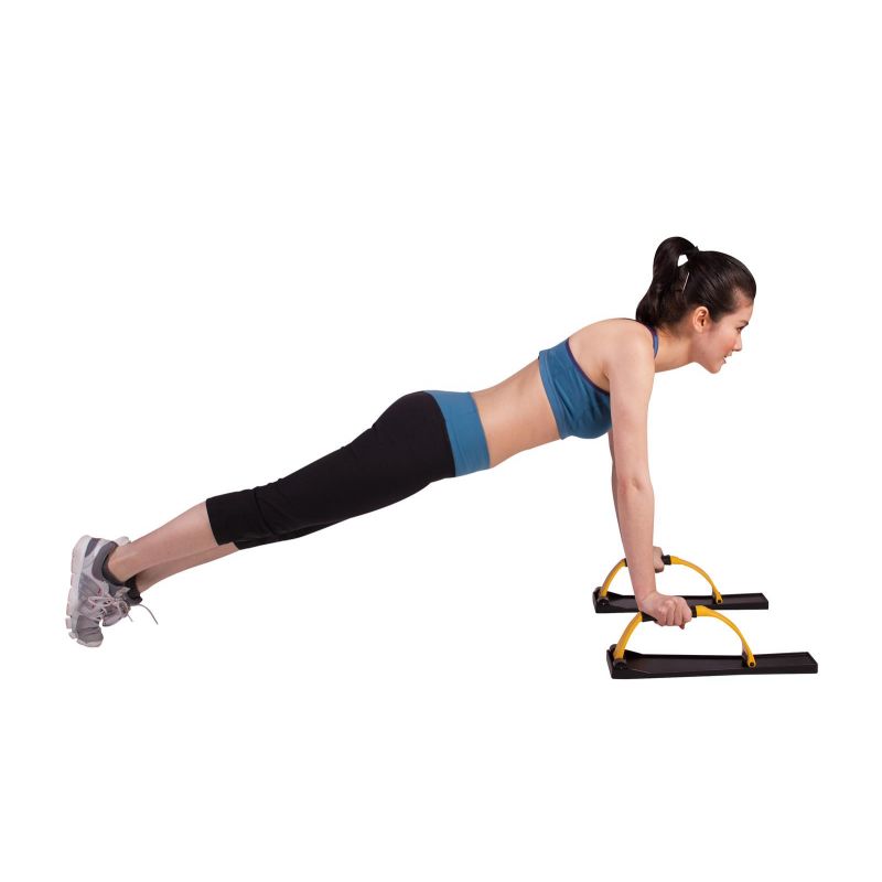 Mit dem Multitrainer können Sie klassische Liegestütze ebenso durchführen wie Kräftigungsübungen, Übungen für die Innen- und Außenseite der Oberschenkel sowie Ganzkörperdehnungen. Durch gezieltes Training werden die Bauch- und Armmuskulatur geformt.