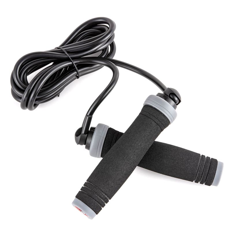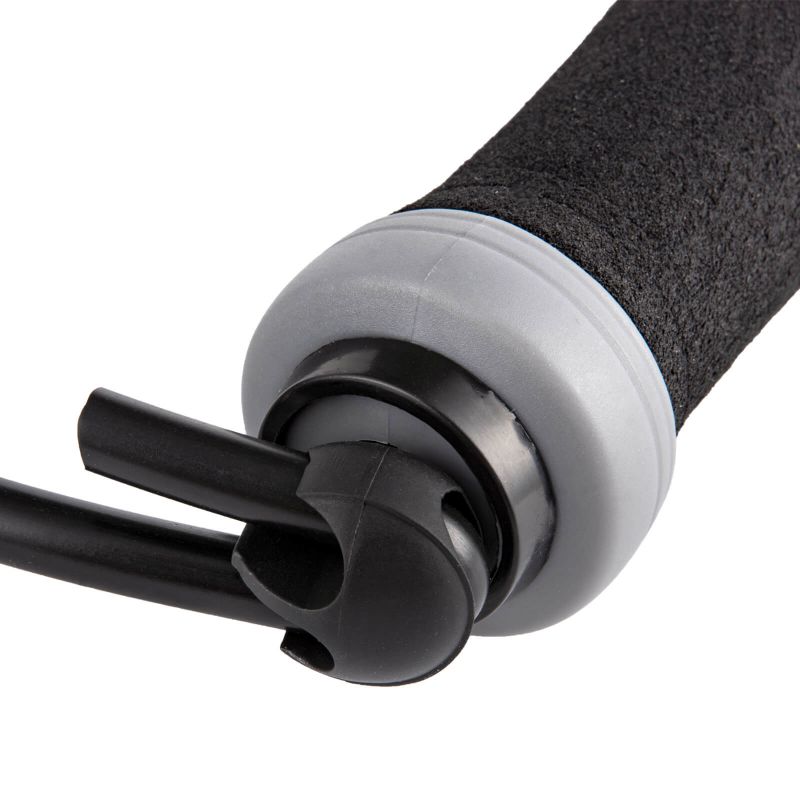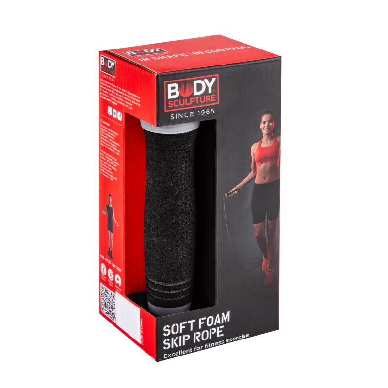 Die Griffe des Springseils BB 725 sind mit weichem Schaumstoff überzogen und liegen dadurch beim Training angenehm in der Hand. Das Seil ist 7 mm dick und sein Gewicht verhindert, dass es sich beim Springen unter den Füßen verheddert.