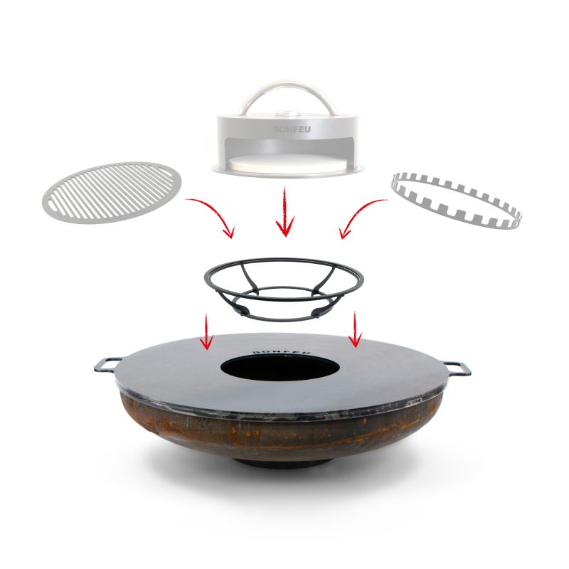 Der BonFeu BonPlancha-Zubehörständer ist ein praktisches Zubehör, das das Kochen im Freien erheblich erleichtert. Dieser Ständer lässt sich einfach auf der BonBiza-Outdoorküche oder den BonBowl-Feuerstellen platzieren und ist ideal für die Verwendung mit dem BonPizza-Pizzaofen, dem Spießring oder dem Grillständer. Er passt perfekt in die Mitte von BonBiza und BonBowl und sorgt so für Stabilität beim Kochen.
