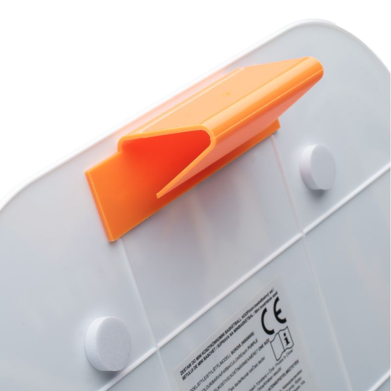 MINI-BASKETBALL-SET BACKBOARD ABMESSUNGEN: 30 x 23 cm MATERIALZUSAMMENSETZUNG: BACKBOARD: PS, PP NETZ: POLYESTER BALL: PVC DAS SET BEINHALTET: – BACKBOARD MIT MINI-KORB – BALL – ZUSÄTZLICHES BEFESTIGUNGSELEMENT