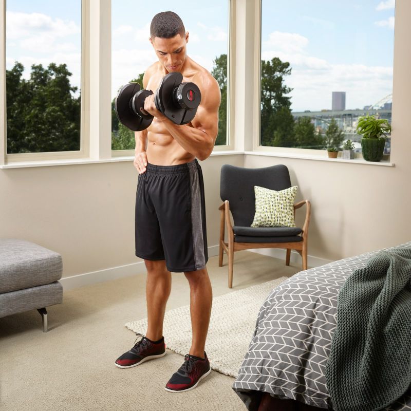 Die Bowflex SelectTech 1090i verstellbaren Hanteln sind eine absolute Neuheit auf dem Markt. Dank ihrer einzigartigen Technologie lässt sich das Gewicht ganz einfach verstellen, was Zeit und Platz spart. Statt 17 Hantelpaare zu kaufen, benötigen Sie nur noch eine und können das Gewicht an Ihre aktuellen Trainingsbedürfnisse anpassen.