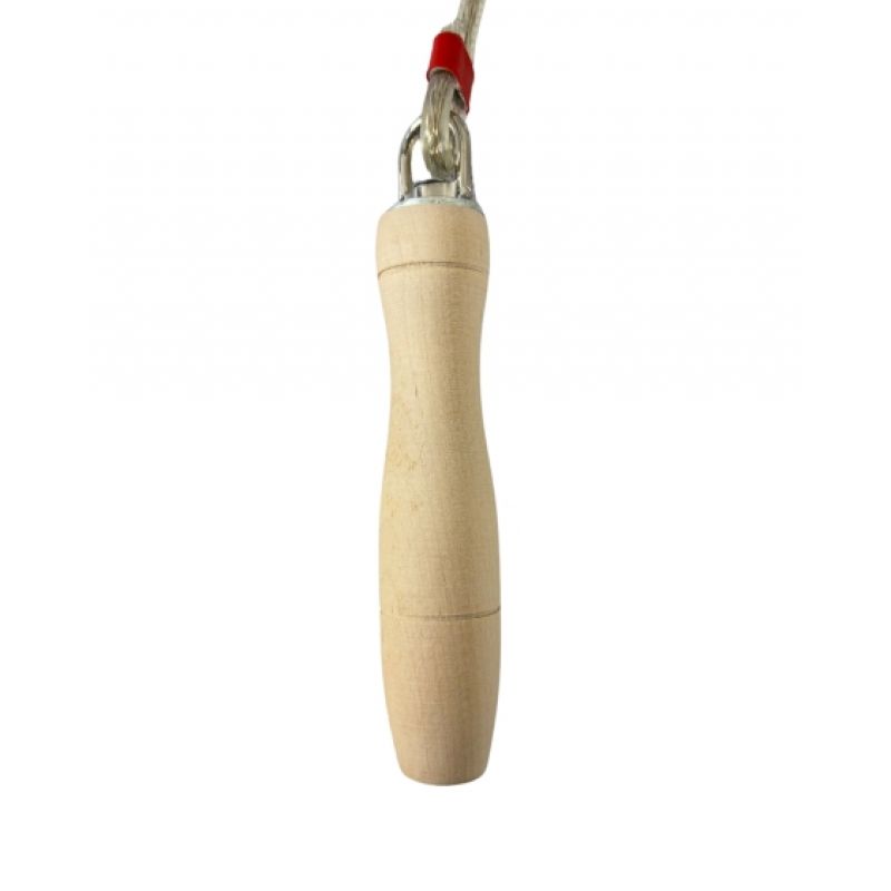• PVC-ummanteltes Stahlkabel, Holzgriff mit Drehgelenk.