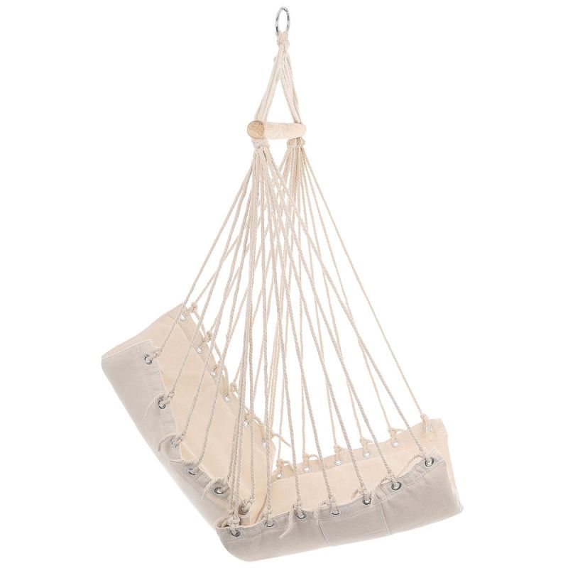 Der brasilianische Hängesessel 100x50CM NATURA mit eingenähtem Kissen ist die perfekte Wahl für einen entspannten Sommernachmittag im Garten und darüber hinaus; Sie können ihn auch zu Hause auf der Terrasse oder dem Balkon verwenden.