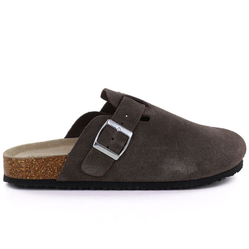 Braune Damen-Lederpantoletten mit geschlossener Zehenpartie, Vinceza 101332