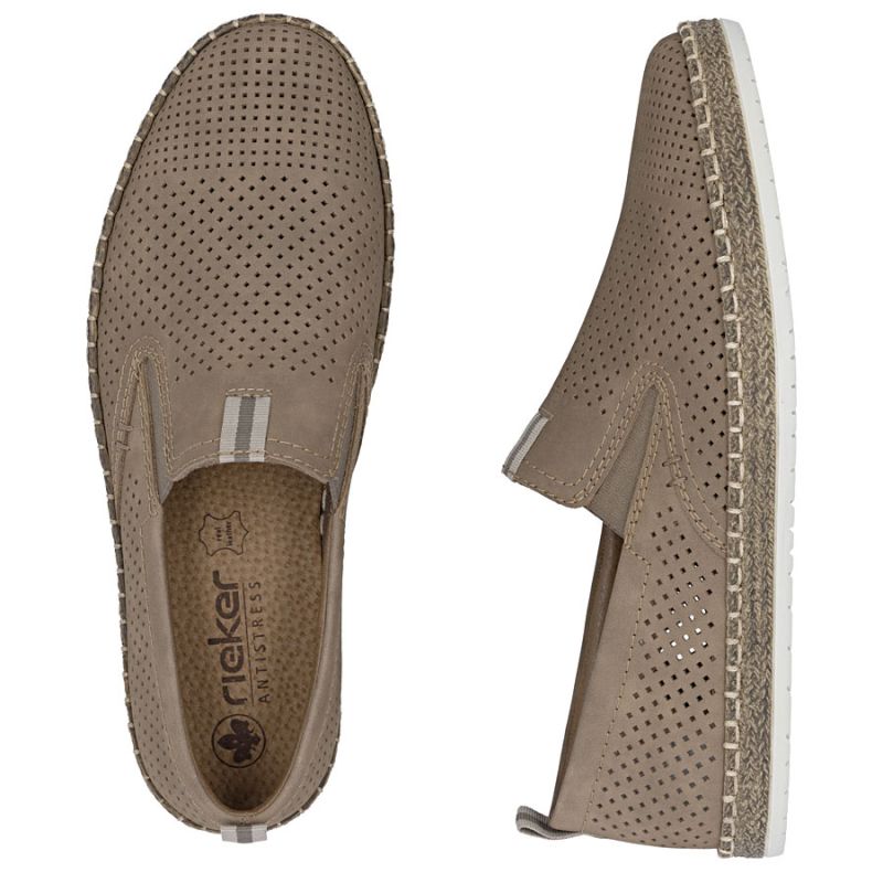 5. Braune Herren-Ledermokassins, durchbrochen, bequem, Rieker B5286-25
