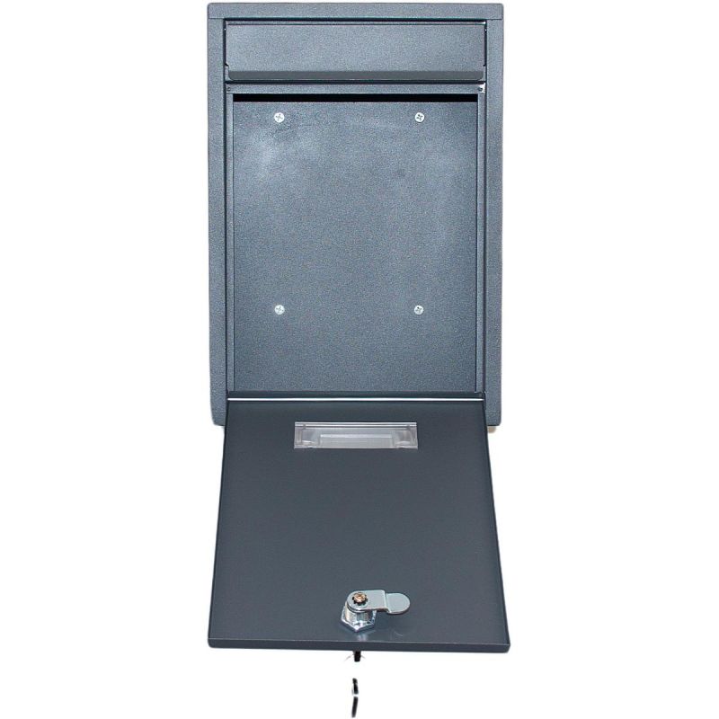 Der nach vorn gerichtete Einwurfschlitz erleichtert die Postzustellung und ermöglicht dem Postboten einen schnellen und bequemen Zugriff auf den Briefkasten. Eine zusätzliche Klappe schützt die Post vor Regen und Schmutz.