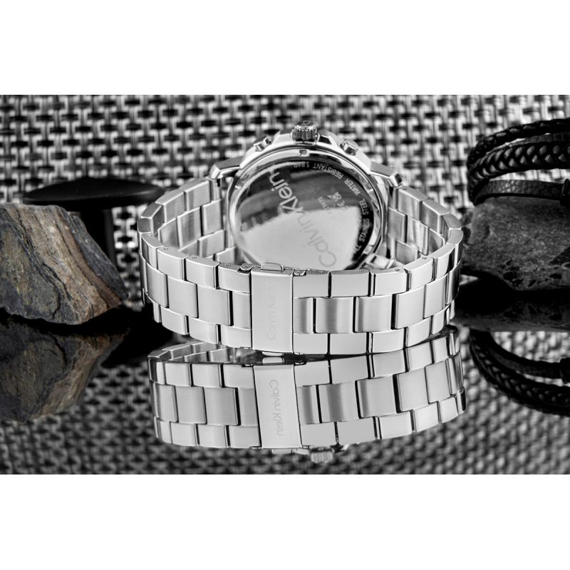 Eine unverwechselbare Form, sorgfältig ausgearbeitete Details und eine durchdachte Farbpalette – dieses Modell beeindruckt auf ganzer Linie. Solide Konstruktion und erstklassige Materialien bilden das Fundament für die kompromisslose Qualität von Calvin Klein. Präzise Zeiger und exklusive Oberflächen zeugen von einer Handwerkskunst, die keiner weiteren Bestätigung bedarf. Das Calvin Klein Logo auf Zifferblatt, Armband und Krone setzt dezente, aber dennoch markante Akzente und unterstreicht die Klasse dieser Uhr.