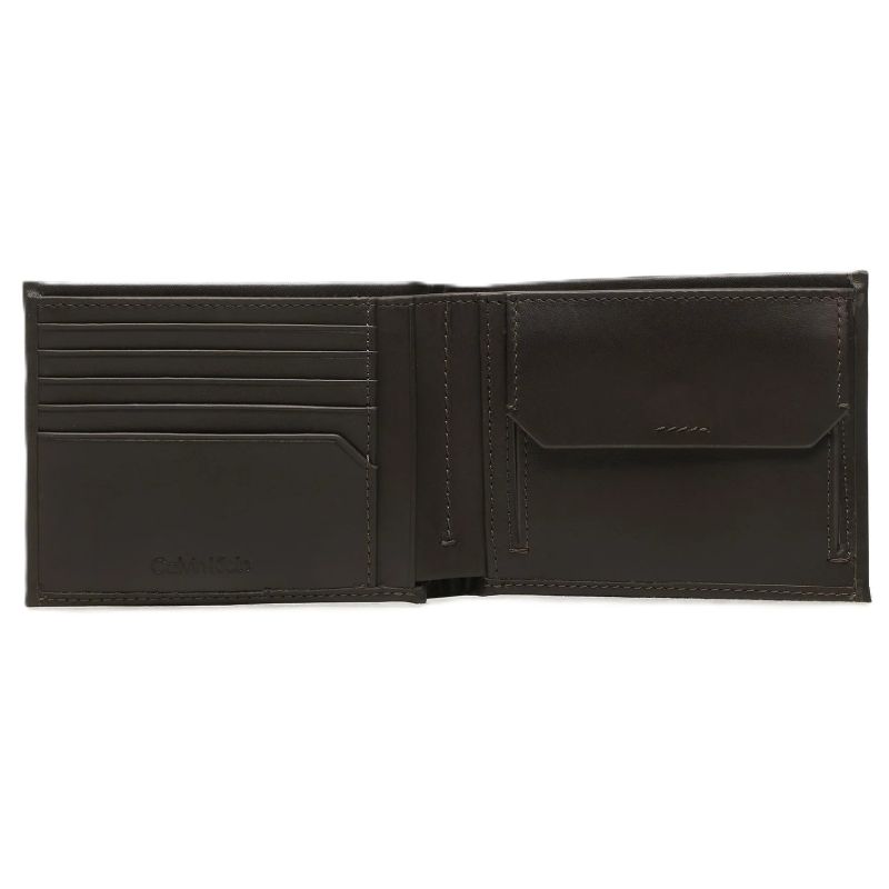 Echtleder-Geldbörse für Herren von Calvin Klein. Schlichtes, zweifach gefaltetes Modell mit 5 Fächern und Münzfach.