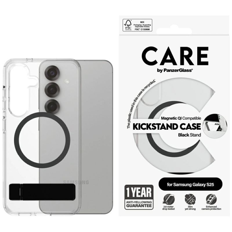 2. CARE by PanzerGlass Feature Black Kickstand & QI Case für Samsung Galaxy S25 – transparent