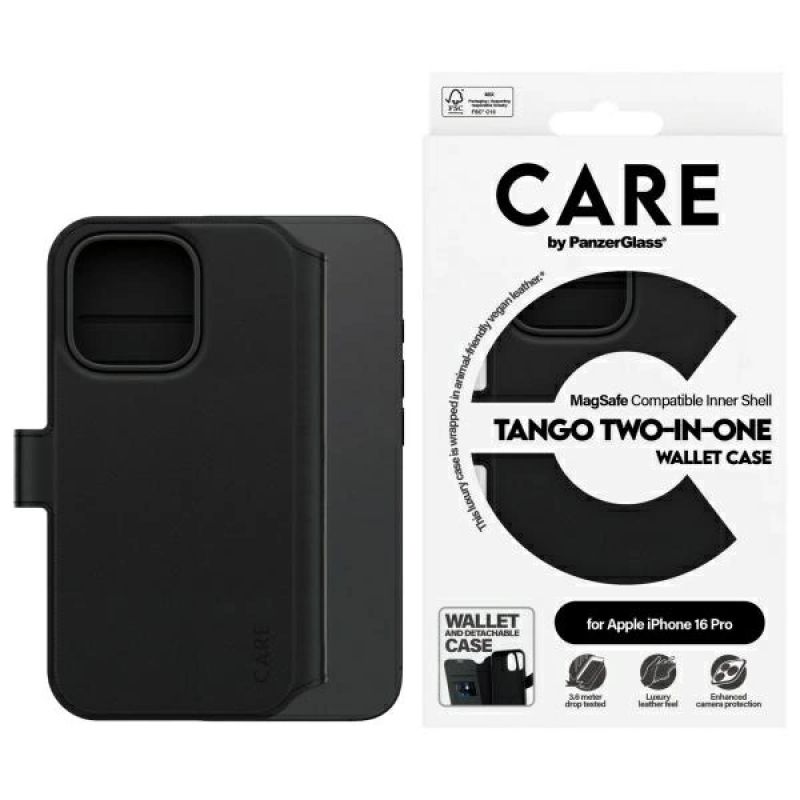 CARE by PanzerGlass Feature Tango 2in1 Wallet MagSafe Hülle für iPhone 16 Pro – Schwarz