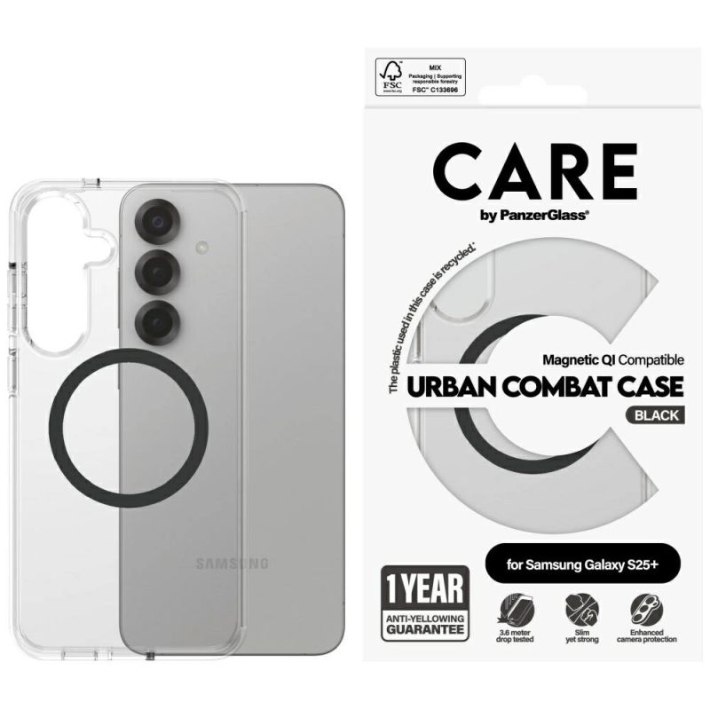 CARE by PanzerGlass Flagship Urban Combat Black QI-Hülle für Samsung Galaxy S25+ – transparent