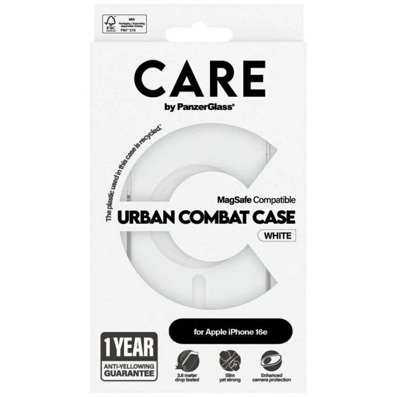 CARE by PanzerGlass Flagship Urban Combat White MagSafe iPhone 16e Hülle - Durchsichtig