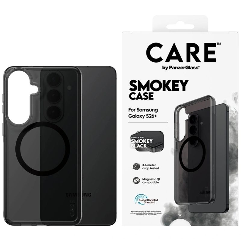 CARE by PanzerGlass Urban Explorer Smokey Hülle mit schwarzem Qi für Samsung Galaxy S26+ - Schwarz