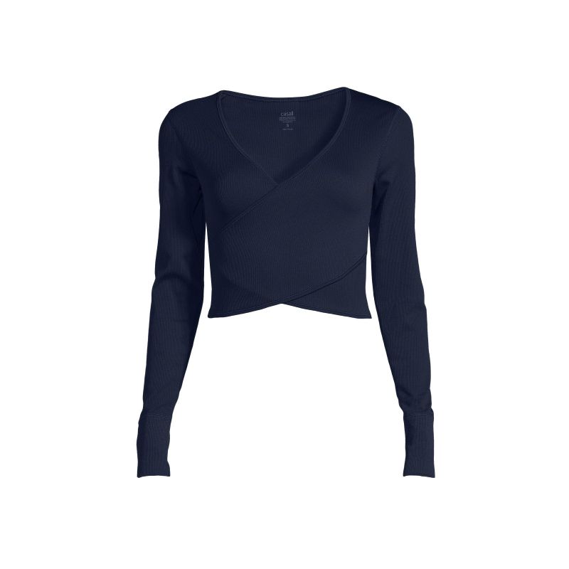 CASALL Seamless Rib Wrap Langarm T-Shirt in Kernblau