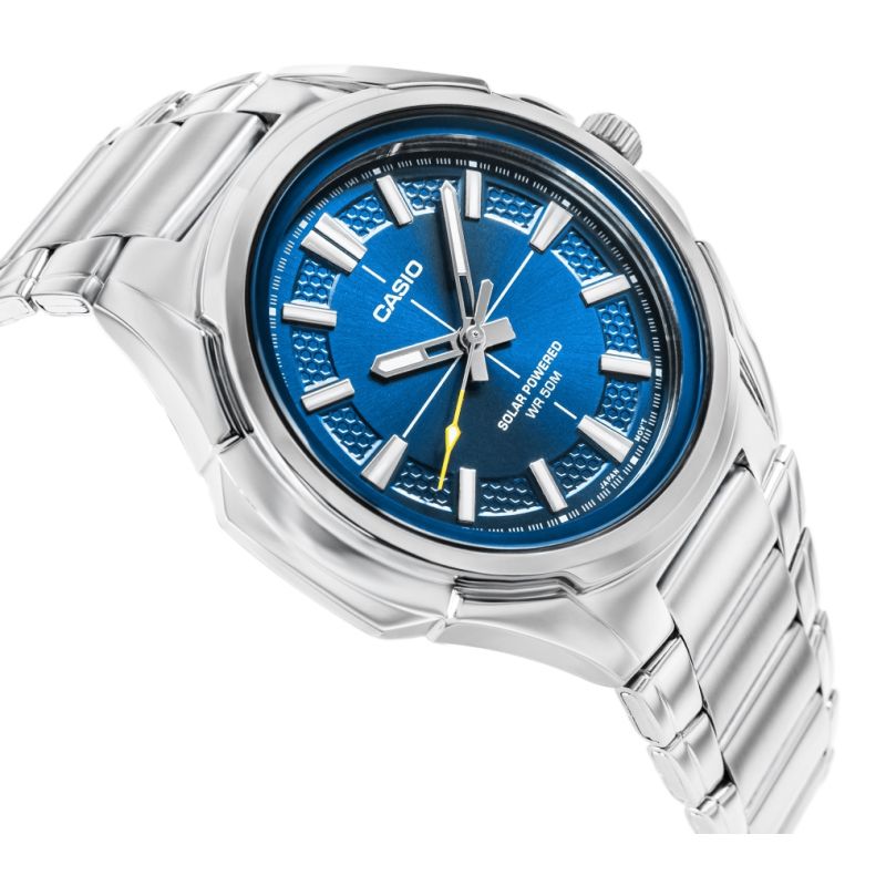 Nutzen Sie die Kraft der Sonne mit der CASIO Solar-Analoguhr! Dank Solarenergie benötigen Sie keine Batterien – das Solarpanel lädt die Uhr mit Licht auf und ermöglicht so bis zu vier Monate Nutzung bei voller Ladung. Das tiefblaue Zifferblatt erinnert an strahlendes Sonnenlicht und verleiht dem Design Charakter und Tiefe. Saphirglas mit Antireflexbeschichtung schützt nicht nur vor Kratzern, sondern verstärkt auch die Farbtiefe des Zifferblatts und sorgt für optimale Ablesbarkeit selbst bei hellem Licht. Die Wasserdichtigkeit bis 50 Meter gewährleistet Schutz im Alltag – ohne Sorgen um Wasser, Regen oder Händewaschen. Dieses sorgfältig gefertigte Modell vereint moderne Technologie mit klassischer, maskuliner Eleganz.