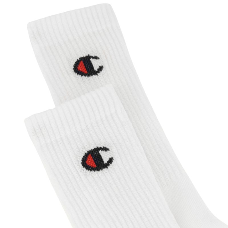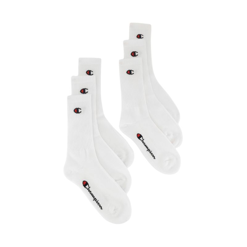 Champion 6er-Pack Weiße Socken U20005 WW001. Diese Champion-Socken sind perfekt für jeden Tag. Der hohe Baumwollanteil sorgt für Atmungsaktivität. Synthetische Fasern verbessern Haltbarkeit und Flexibilität. Das elastische, hohe Bündchen verhindert Druckstellen und stabilisiert die Socken. Verstärkte Zehen- und Fersenpartie. Die Packung enthält 6 Paar Socken. Material: 70 % Baumwolle, 28 % Polyester, 2 % Elastan.