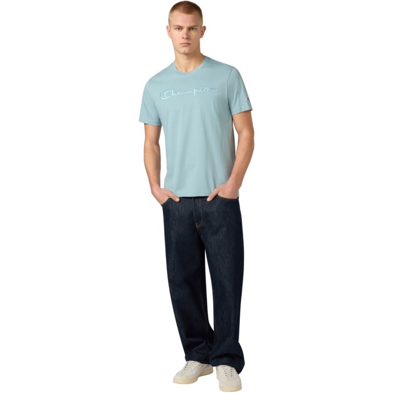 Champion Kurzarm-T-Shirt für Herren, Blau, 220273 BS221. Dieses Champion Herren-T-Shirt ist perfekt für jeden Tag. Normale Passform. Kleines Logo am Ärmel. Großes Logo auf der Brust. Weiches Material. Material: 100 % Baumwolle.