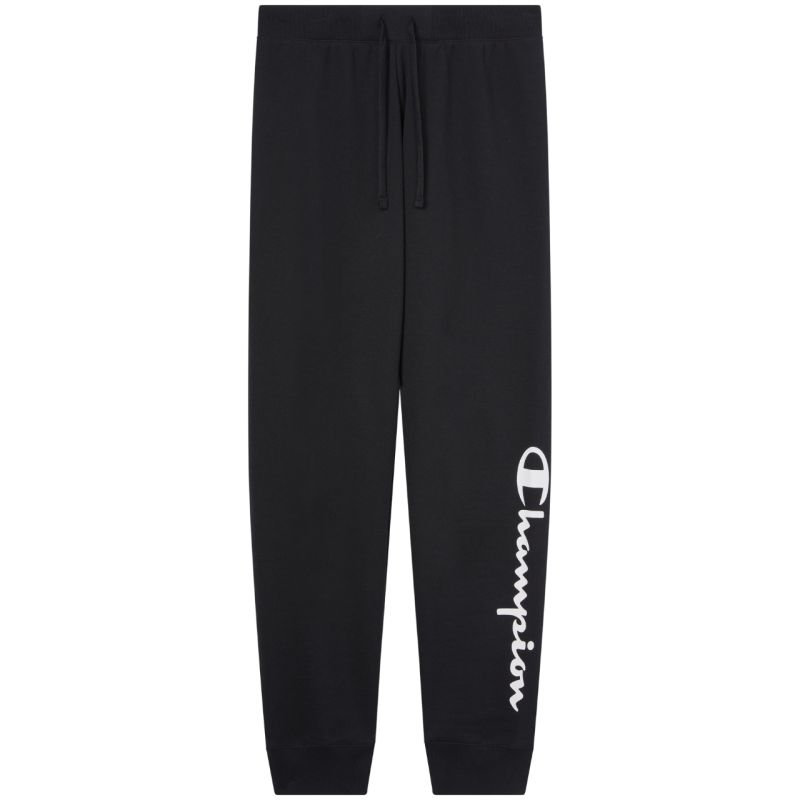 Champion Damen-Hose mit Rippbündchen, Schwarz, 118429 KK001. Mit dieser Hose von Champion unterstreichen Sie Ihren Streetwear-Style jeden Tag. Schmale Passform mit Bündchen an den Unterschenkeln. Weiches Material. Elastischer Bund mit außenliegendem Kordelzug. Großes Logo am linken Bein. Material: 55 % Baumwolle, 45 % Polyester.