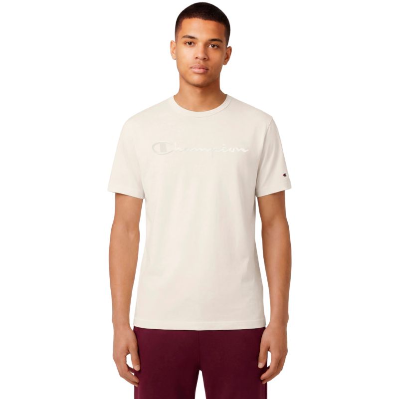 Champion Herren Kurzarm-T-Shirt Creme 220273 YS084. Dieses Champion Herren-T-Shirt ist perfekt für den Alltag. Normale Passform. Kleines Logo am Ärmel. Großes Logo auf der Brust. Weiches Material. Material: 100 % Baumwolle.