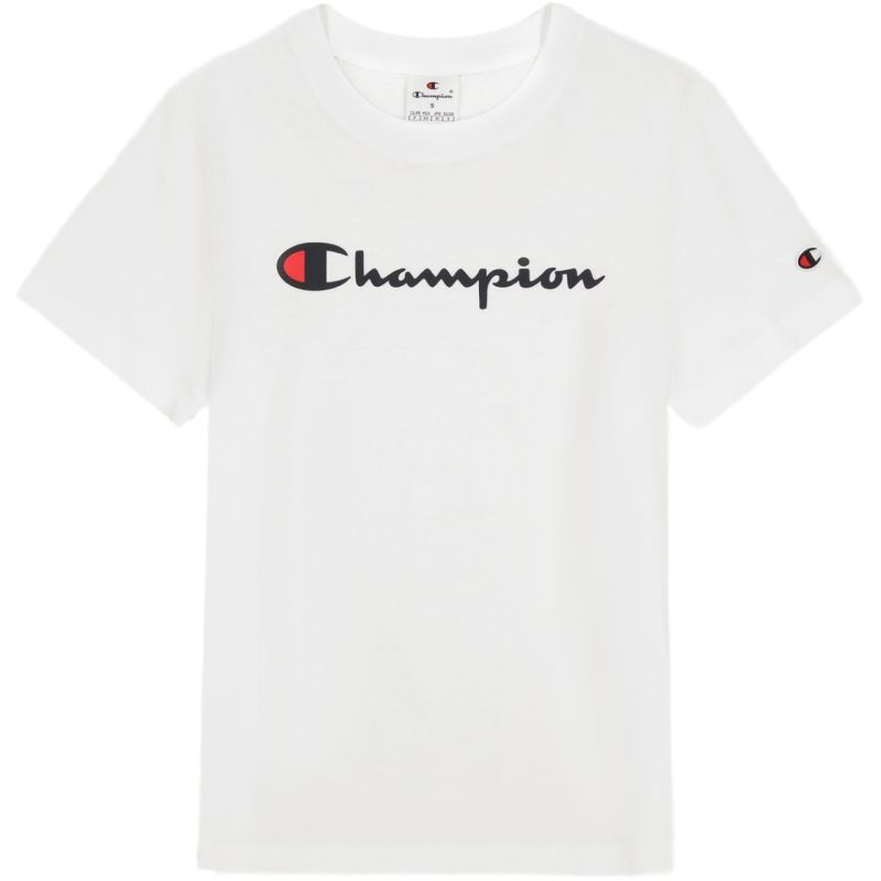 Das Champion Damen-T-Shirt ist perfekt für den Alltag. Normale Passform. Gerippter Halsausschnitt. Nackenband hinten. Weicher Stoff.