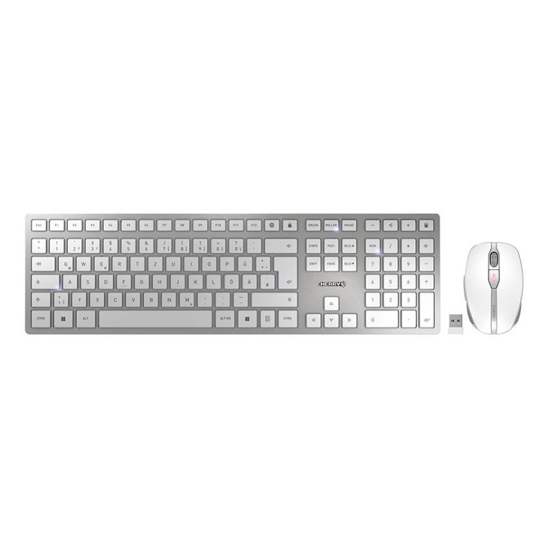 CHERRY DW 9100 SLIM Tastatur und Maus inklusive, universell, kabellos (RF) + Bluetooth, QWERTZ-Tastatur, Neusilber