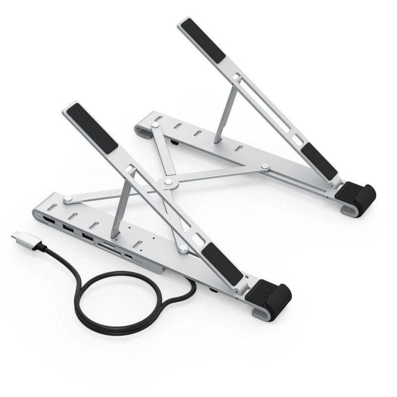 Die meisten modernen Laptops haben zu wenige Anschlüsse, um all die zusätzliche Hardware zu bewältigen, die Sie benötigen, um Ihr Allround-Heimbüro einzurichten. Die Lösung ist ein komfortabler, verstellbarer Laptopständer, der dem Benutzer Unterstützung auf verschiedenen Ebenen bietet.