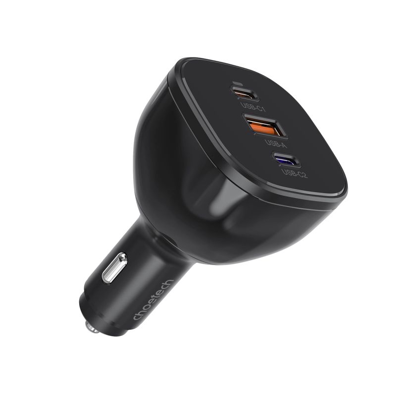 Choetech TC0024 Autoladegerät mit einer Leistung von bis zu 160 W mit 2 USB-C PD 3.1-Anschlüssen und 1 USB-A-Anschluss – Schwarz