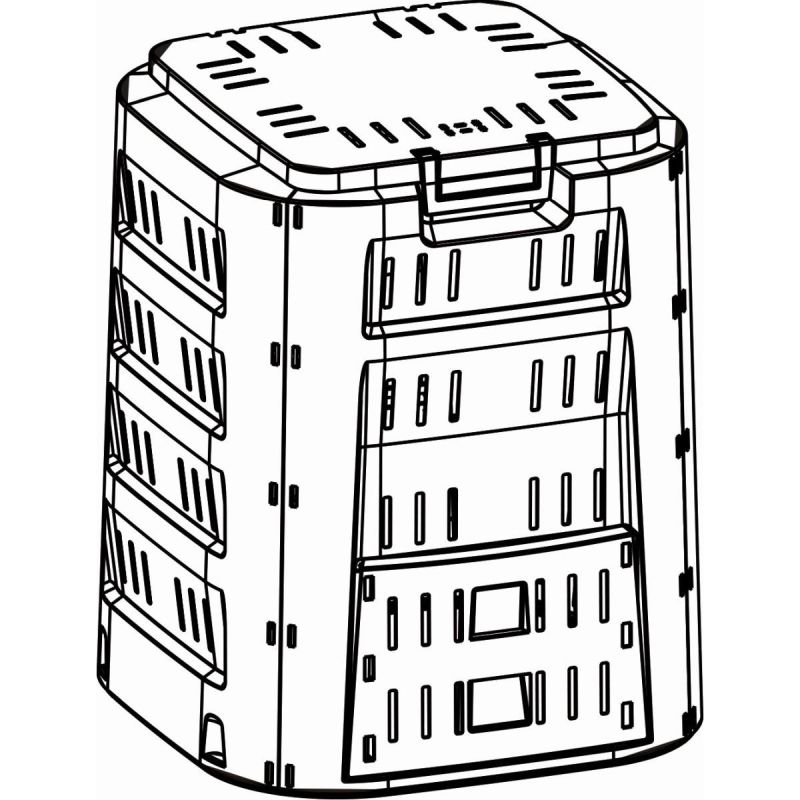 - Ein praktischer Griff, der die obere Klappe verriegelt, erleichtert das Einwerfen von Abfällen in den Komposter.